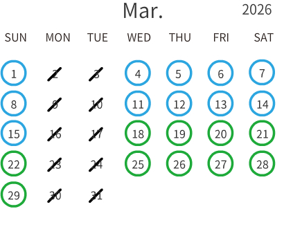 出勤日をご確認の上、店舗を選択してご予約へお進みください。